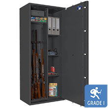 Idéal pour sécuriser les Fusils, Pistolets, Munitions et Équipement de Chasse. Convient aux Domiciles Privés, aux Stands de Tir, à la Police ou à l’Armée.
