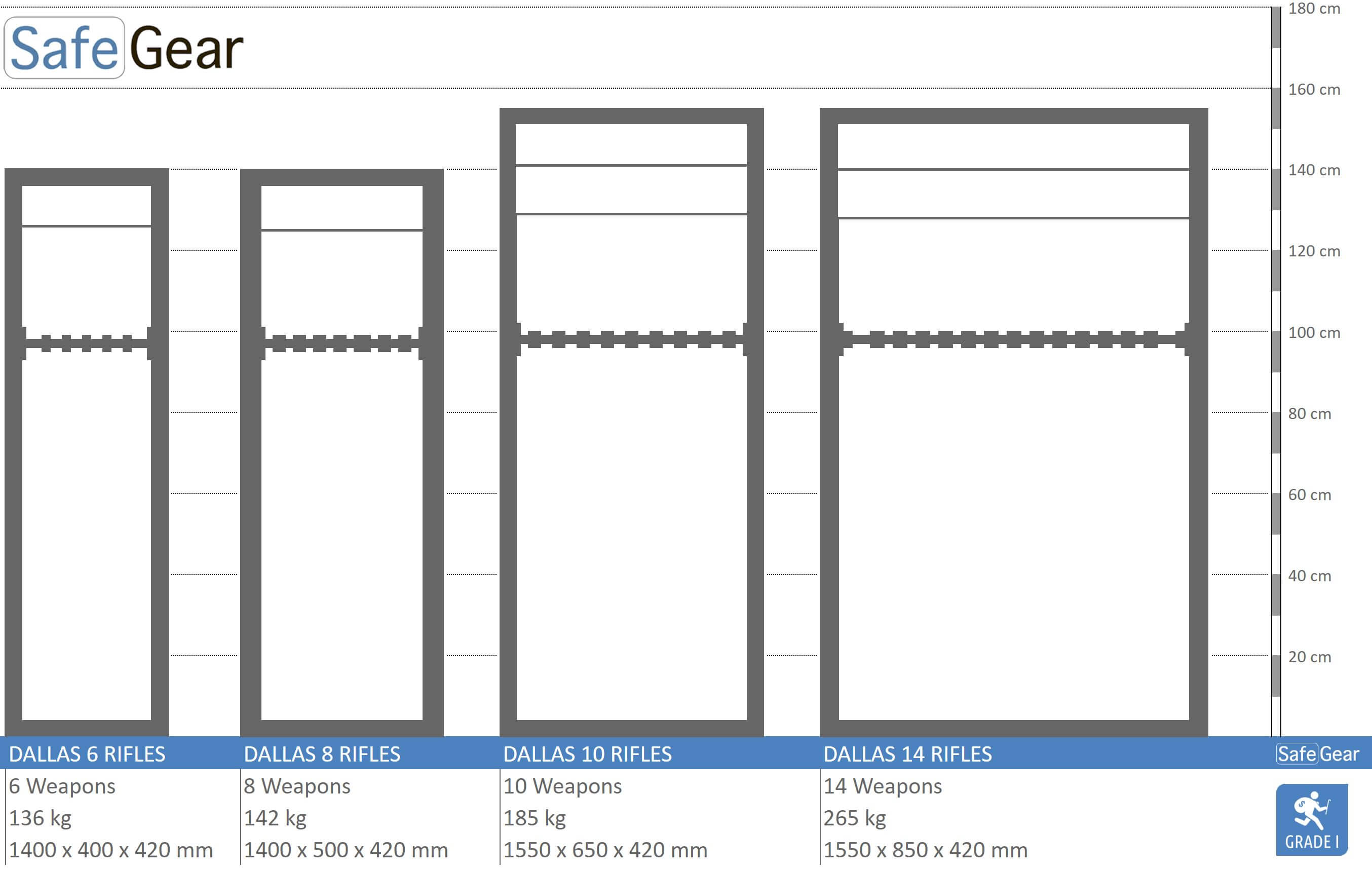 L’armoire à fusils Dallas idéale pour les armes longues, telles que les fusils et les munitions et étuis correspondants. Conçu pour être installé chez des particuliers, des associations de chasse, des commissariats de police et des organisations militaires.