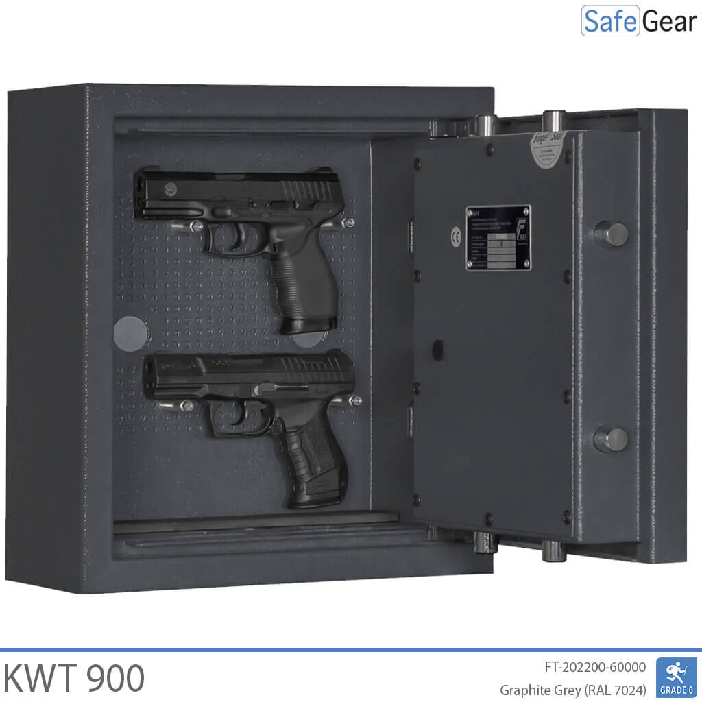 Les KWT 900 sont des coffres-forts pour armes de poing approuvés par les assurances et certifiés de classe 0 selon DIN EN 1143-1.