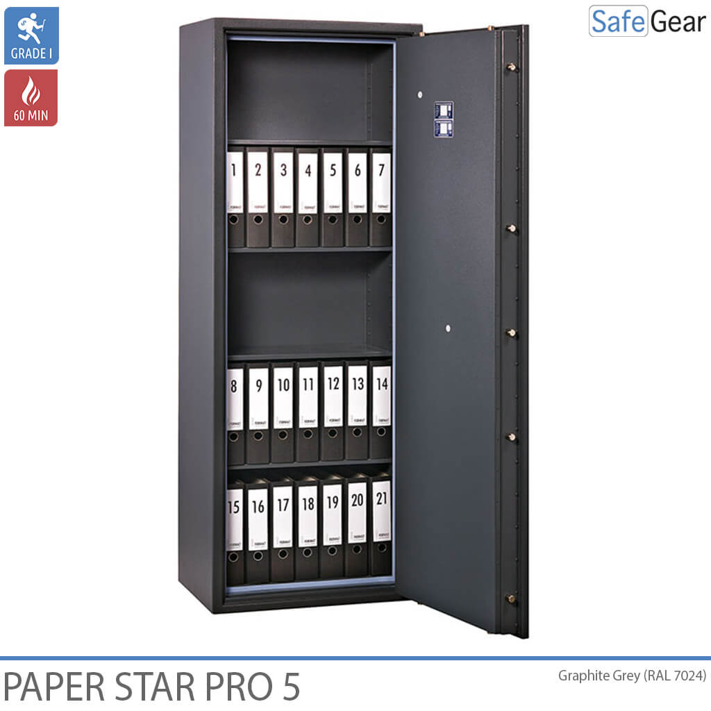 2. Paper Star Pro 3 - 21 Binders - Burglary Grade 1 / Fire Test 60 min - Graphite Grey - Key lock