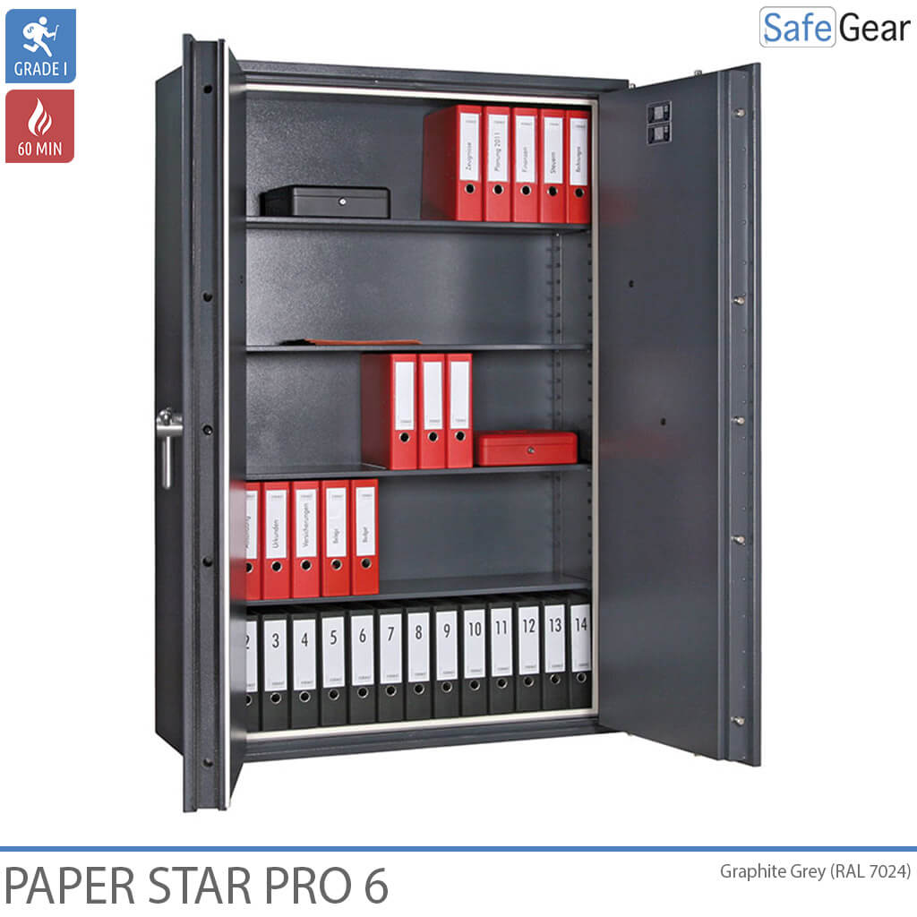 6. Paper Star Pro 6 - 70 Binders - Burglary Grade 1 / Fire Test 60 min - Graphite Grey - Code Lock Combi B30