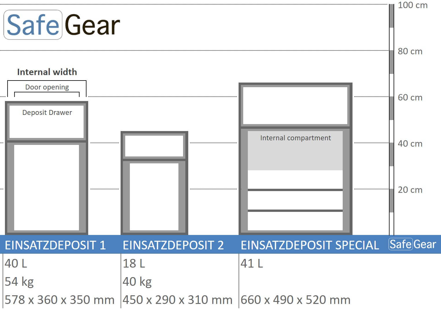 Les Einsatzdeposit sont des coffres-forts de dépôt idéaux pour les commerces de détail, afin d’y déposer de l’argent, des clés ou d’autres objets de valeur en toute sécurité.