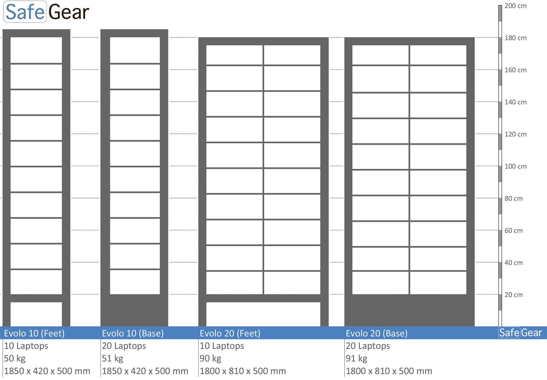 Evolo - Coffre-fort pour ordinateur en acier solide avec des cordons d’alimentation (230V) pour charger chaque unité verrouillée. Chaque porte a une serrure cylindrique et deux clés fournies.