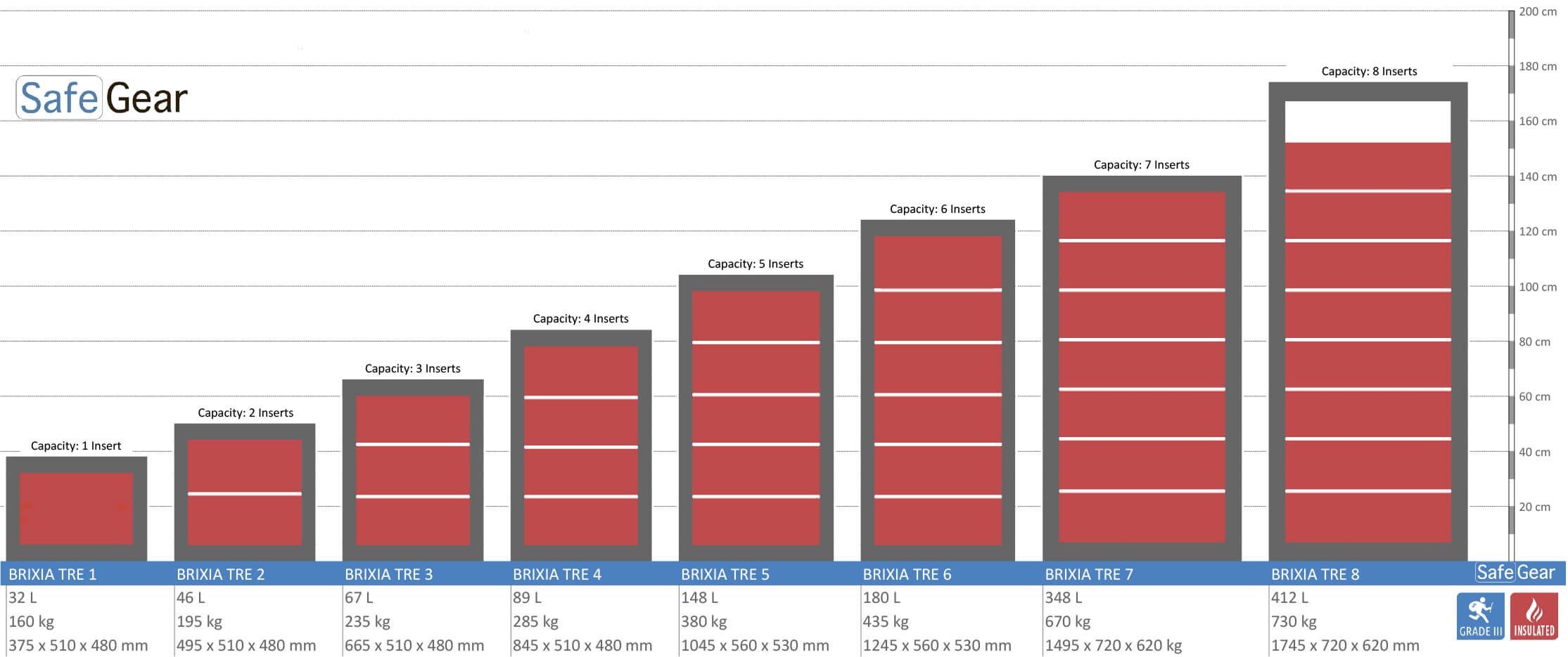 Les coffres forts Brixia Tre sont testés anti-effractions de Grade III et ignifuges.