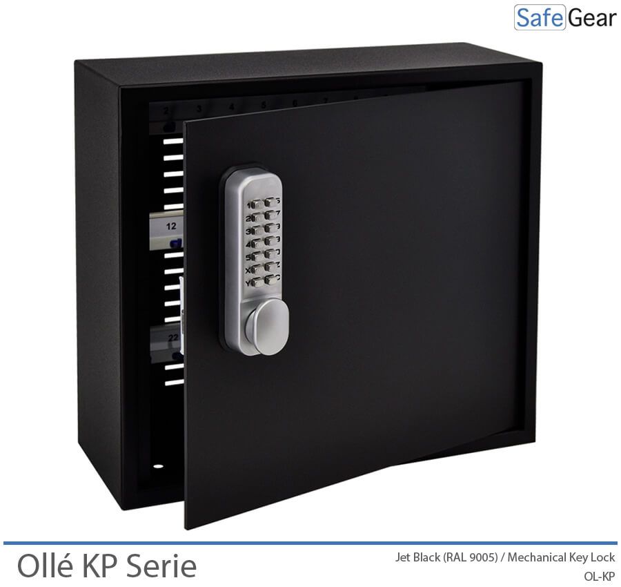 Ollé KP est une série de coffres-forts pour clés, avec porte-clés et numéros inclus, fourni avec une serrure à combinaison mécanique et une capacité de 50 ou 104 clés.